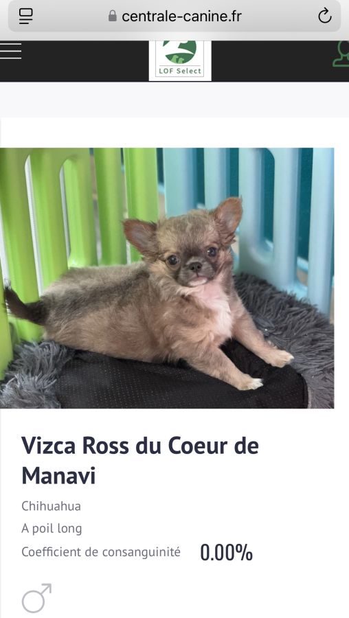 Chien Chihuahua LOF, sevré, plus de 8 semaines – Vacciné – Tatoué / pucé disponible à Coutras (33) via l’élevage Du Coeur de Manavi